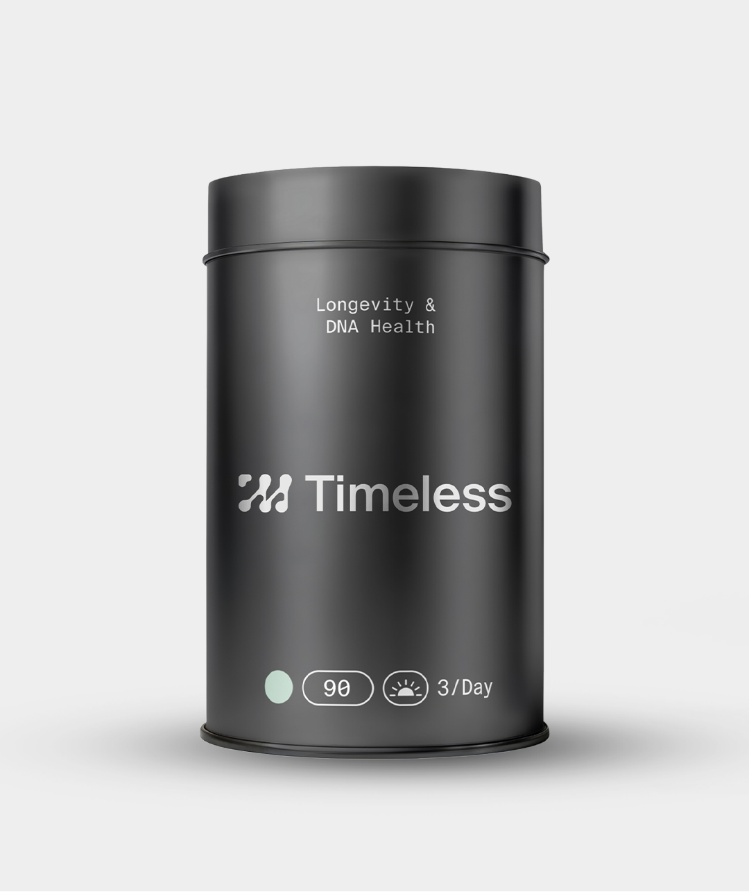 Timeless is an advanced longevity formula combining essential vitamins, minerals, and bioactive compounds to support cellular health, gene expression, and healthy ageing.